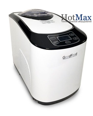 Апарат для приготування морозива (фрізер) GoodFood ICM15. Застосовується для приготування морозива, сорбетів, охолоджених десертів та йогуртів. Для різноманітності смаку морозива можна додати натуральні продукти: горіхи, фрукти, сухофрукти та шоколад. Корпус пластиковий, колір білий. Контейнер для морозива обєм близько 1,5 л. Температура заморожування -35С. Охолодження компресором. Цикл приготування морозива 30–60 хв. У комплекті ложка для морозива. РК-дисплей показує кожен етап роботи. Холодоагент R600a. Потужність 140 Вт. Напруга: 220 В / 50 Гц. Габаритні розміри 240х390х326 мм. – Вага 10,56 кг.
