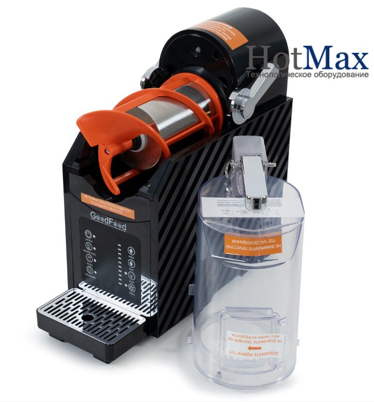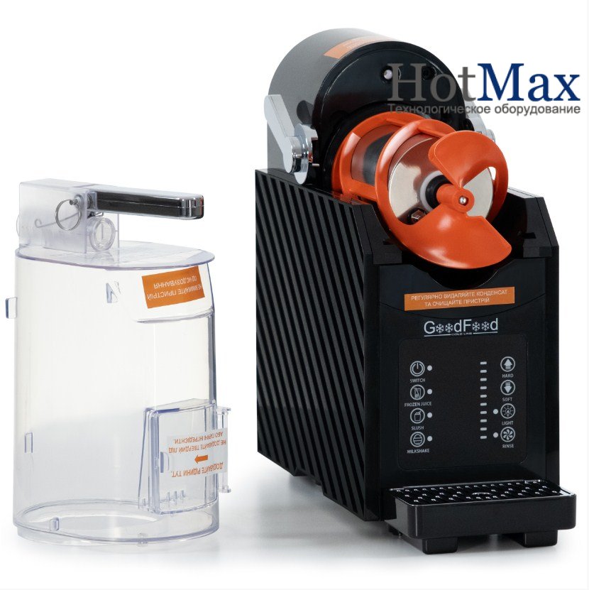 Гранітор GoodFood SMG18 - являє собою холодильно-морозильний апарат для приготування солодкого фруктового льоду та інших холодних десертів. Принцип дії гранітора: рідина заливається в колбу, охолоджується до температури -5...0 градусів С, густіє та кристалізується, замерзнути їй не дає шнек, що постійно обертається та перемішує до потрібної консистенції, у результаті виходить холодний напій "фруктовий сніг", який порційно розливається у склянки через спеціальний краник. Не містять озоноруйнівні речовини та фторовані парникові гази.