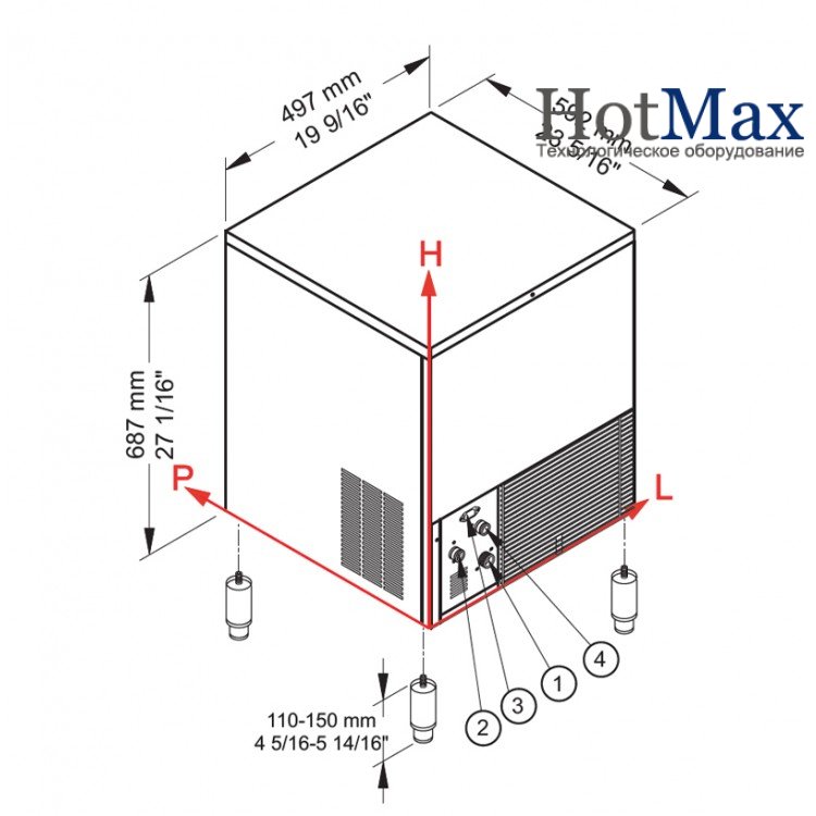 Производит лед в форме кубиков. Данный льдогенератор оснащен воздушной системой охлаждения.