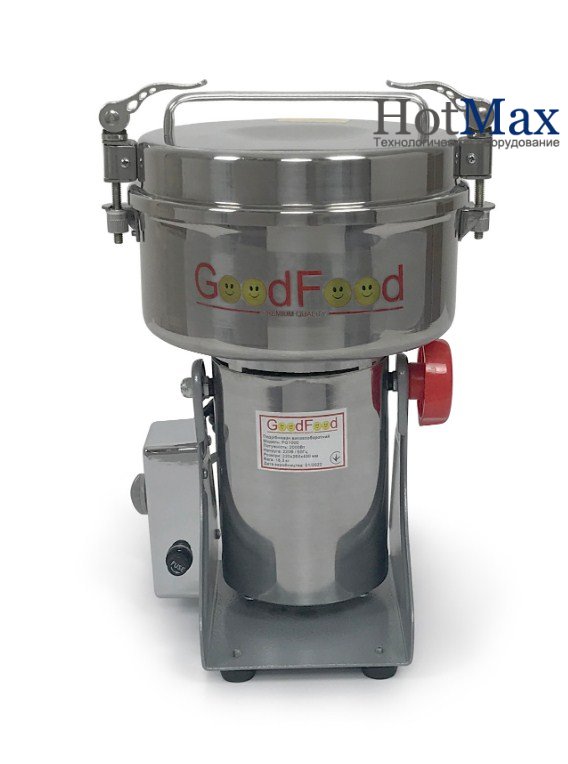 Подрібнювач високооборотний (млин) GoodFood PG1000. Призначений для розмелювання зернових та бобових у борошно 1-го та 2-го сорту, подрібнення спецій, кави, цукру. Подрібнення відбувається у герметично закритому корпусі. Млин для цукру та спецій комплектується: змінними лопатями ножів, запобіжником, запасними графітовими щітками для електромотора.