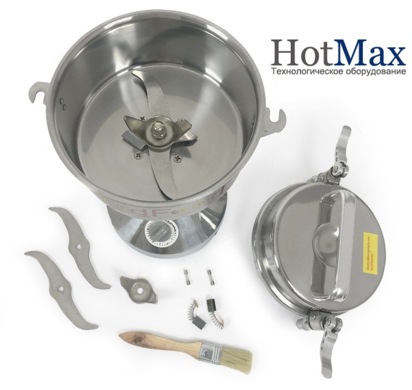 Подрібнювач високооборотний (млин) GoodFood PG400 - призначений для розмелювання (сухих інгредієнтів) зернових та бобових у борошно 1-го та 2-го сорту, подрібнення спецій, кави, цукру. Подрібнення відбувається у герметично закритому корпусі. Млин для цукру та спецій комплектується: змінними лопатями ножів, запобіжником, запасними графітовими щітками для електромотора.