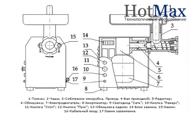 Прекрасные эксплуатационные характеристики (надежность, длительное время эксплуатации, бесшумность и плавность работы) достигаются благодаря установленному червячному редуктору. В процессе работы не возникает необходимости в проведении регулировок и дополнительных настроек промышленной мясорубки, к тому же, значительно уменьшается процент выполнения текущего ремонта.