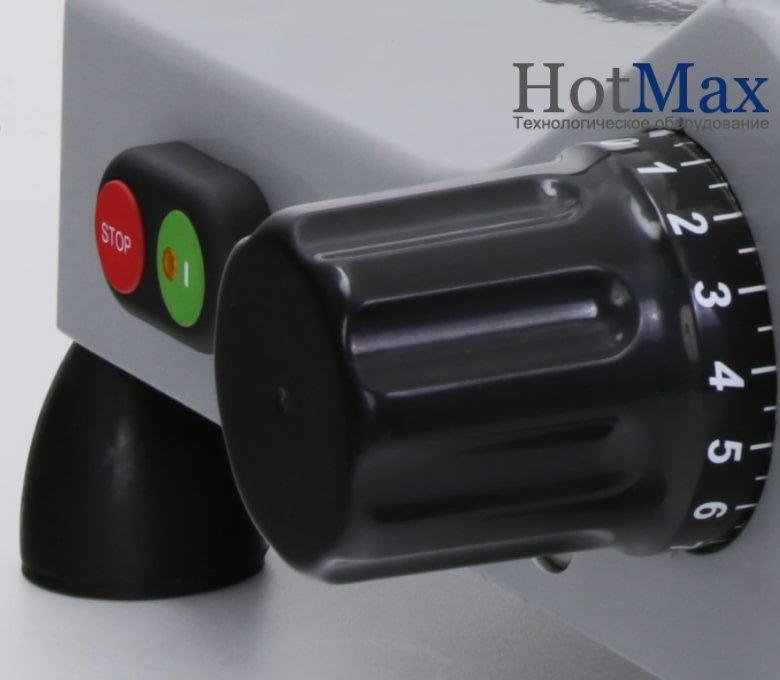 Слайсер обеспечивает максимально точную нарезку ломтиков заданной толщины, которая предусматривается в диапазоне 0-15 мм, с минимальной потерей продукта. Управление слайсером относится к полуавтоматическому типу, то есть предусматривает ручную подачу. Дисковый нож слайсера оснащен специальной защитой, что обеспечивает ему безопасное применение. Cлайсер снабжен затачивающим устройством, позволяющим постоянно держать режущую кромку ножа острой.