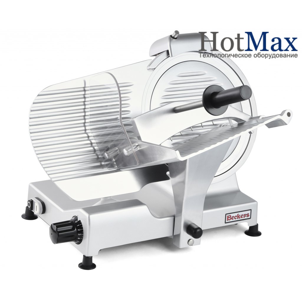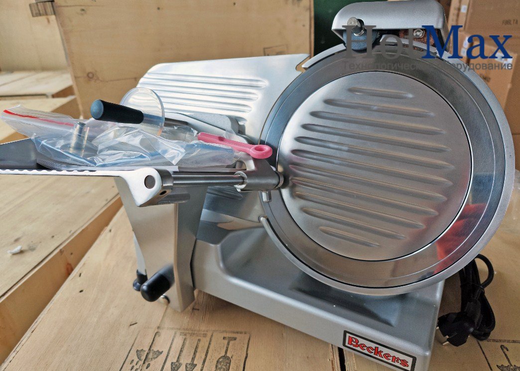 Напівавтоматичні слайсери з ручною подачею фірми Beckers призначені для рівного нарізування гастрономічних продуктів: ковбасних виробів, сирів твердих сортів, копченостей.
