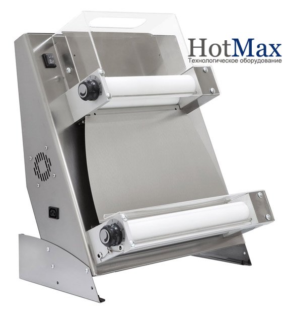 При первом и втором проходе через валики можно регулировать толщину заготовки. Данная модель тестораскатки широко используется в небольших пиццериях, так как позволяет оптимизировать процесс изготовления заготовок для пиццы. Основным преимуществом данной модели тестораскаточной машины является перпендикулярное расположение валиков, которое делает нежную структуру заготовки.