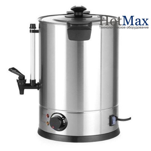 Некапающий кран из полипропилена. Максимальная высота чашки: 130 мм (без поддона). Удобный указатель уровня воды. Выключатель с силиконовым покрытием и поворотная ручка для установки требуемой температуры. Установка температуры при помощи термостата в диапазоне от 45 °C до 110°C.