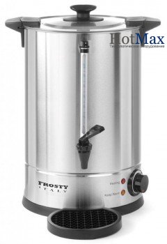 Кипятильник двухстенный Frosty FWBD-08B выполнен из нержавеющей стали- внешний корпус - нерж.сталь AISI 201 ,внутренний корпус - нерж.сталь AISI 304. Ненагревающиеся ручки и ручка крышки из полипропилена. Крышка с безопасным замком типа «Twist-Lock».