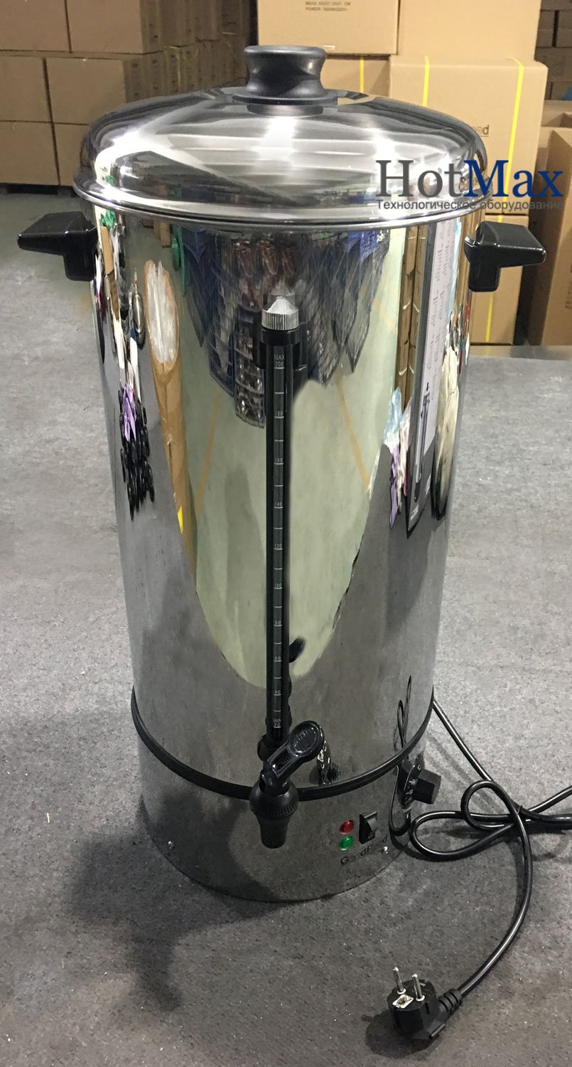 Индикатор уровня заполнения воды. Наполнение водой – вручную. Расход 45-50 чашек. Автоматический термостат. Регулировка температуры воды 30-100 С. Защита от перепада напряжения. Устойчивое основание.