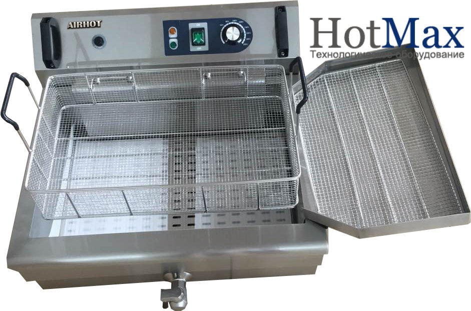 Чебуречниця AIRHOT EC-6 призначена для приготування у фритюрі різних продуктів: чебуреків, пиріжків, мяса, пончиків. Основна відмінність чебуречниці від фритюрниці полягає у широкій та неглибокій формі ванни, і, відповідно, у збільшеній площі робочої поверхні. А для викладки щойно приготовлених чебуреків є спеціальний піддон для стікання масла з продукту назад у ванну.