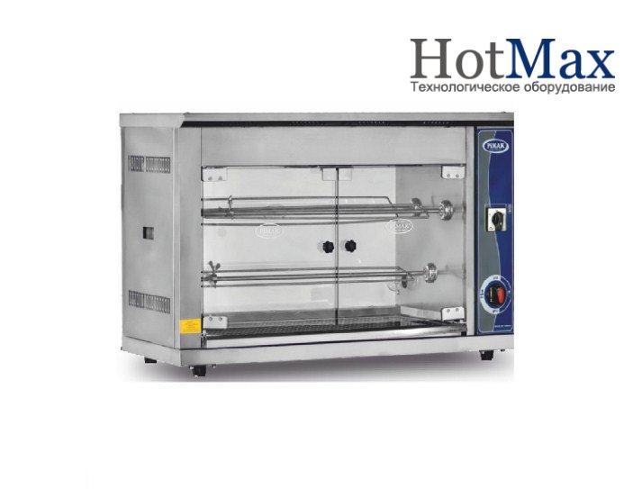 Процесс жарки легко регулируется с помощью простой панели управления. Все модели имеют встроенную подсветку, регулятор температуры, поддон для сбора жира. Тены расположены сверху, задняя стенка стеклянная. 3,5кВт/320гр/ч.