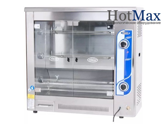 Гриль для кур Pimak М004G корпус грилей выполнен из нержавеющей стали, имеет вентиляционные отверстия. Для стекания жира предусмотрен специальный поддон. Передняя и задняя панель грилей выполнена из высокопрочного стекла, выдерживающего температуру до 300С.