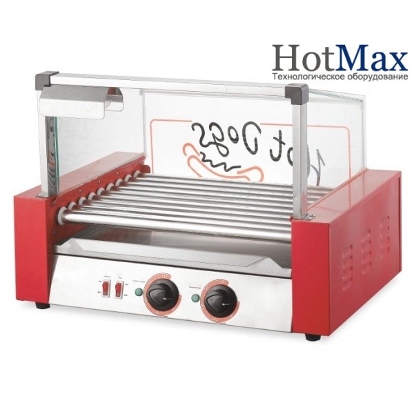 Роликовый гриль Frosty (Фрости) WY-009 оснащен 9 роликами и защитным стеклом(куполом) для гигиенической защиты продуктов.