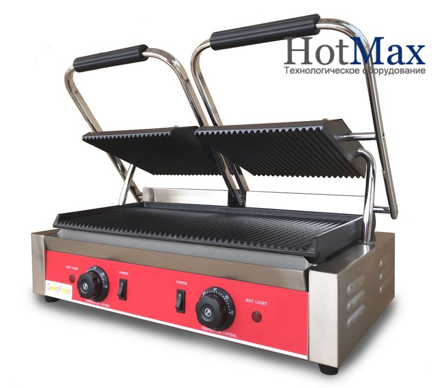 Гриль контактный GoodFood ECG20RR Panini RED используют в фаст-фудах и других точках уличной торговли для быстрой обжарки шаурмы, ход-догов, бутербродов, овощей-гриль, мясных и рыбных стейков. Гриль-тостер придает им аппетитный и привлекательный вид за счёт поджаристых полосок, к тому же время на приготовление блюд на 20-30% меньше, чем на обычных грилях и жарочных поверхностях, что является приоритетным в выборе данного гриля. Два регулятора мощности.