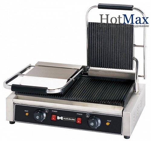 Гриль контактный HURAKAN HKN-PE44R - применяется для обжарки мяса, колбасок, филе рыбы, бутербродов в кафе и на точках быстрого питания. Рабочие поверхности из чугуна, покрытого эмалью.