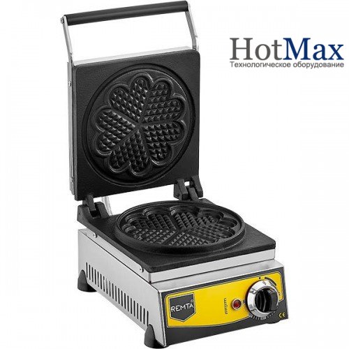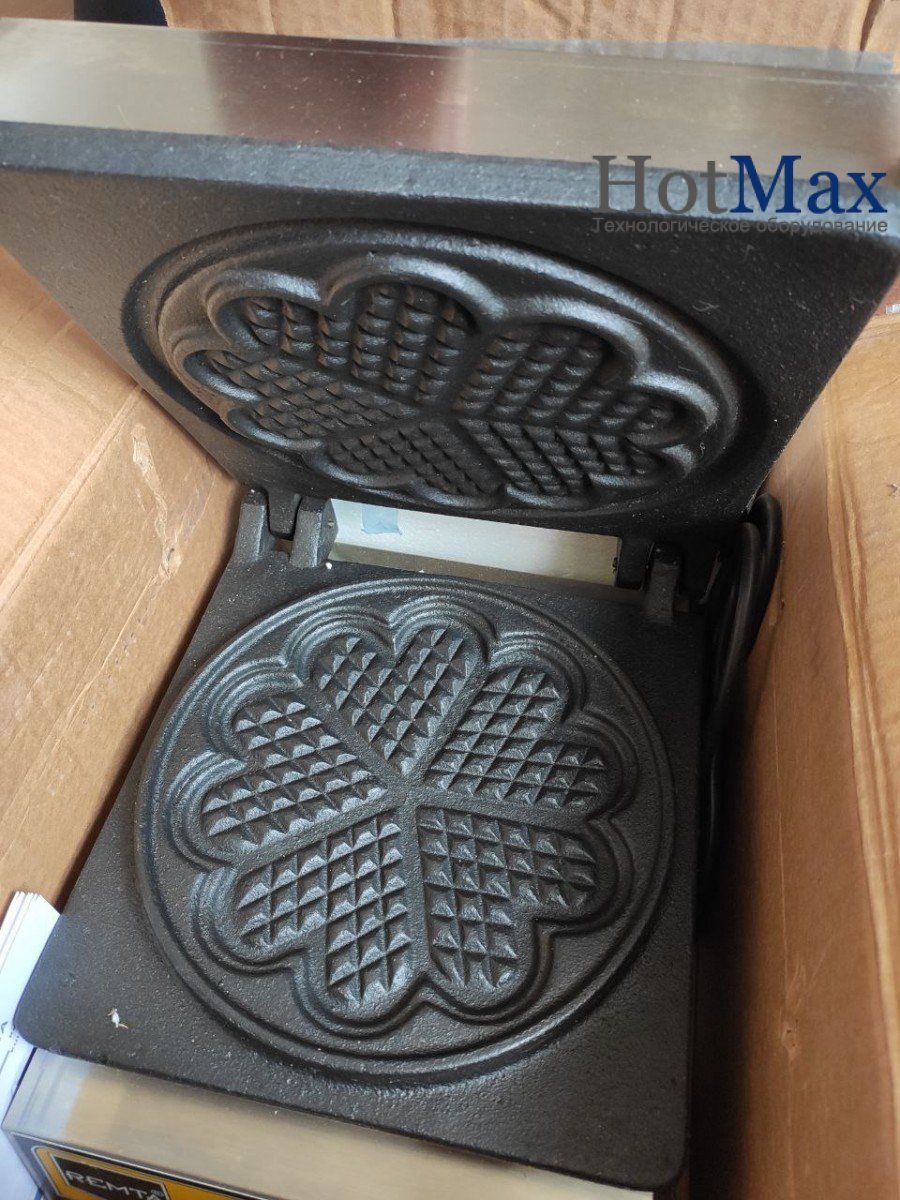Вафельница электрическая профессиональная для выпечки бельгийских вафель круглой формы (сердечко). Чугунная накладка с тефлоновым покрытием. Одновременная выпечка 5 вафель. Терморегулятор диапазона 0..300С. Корпус из нержавеющей стали.