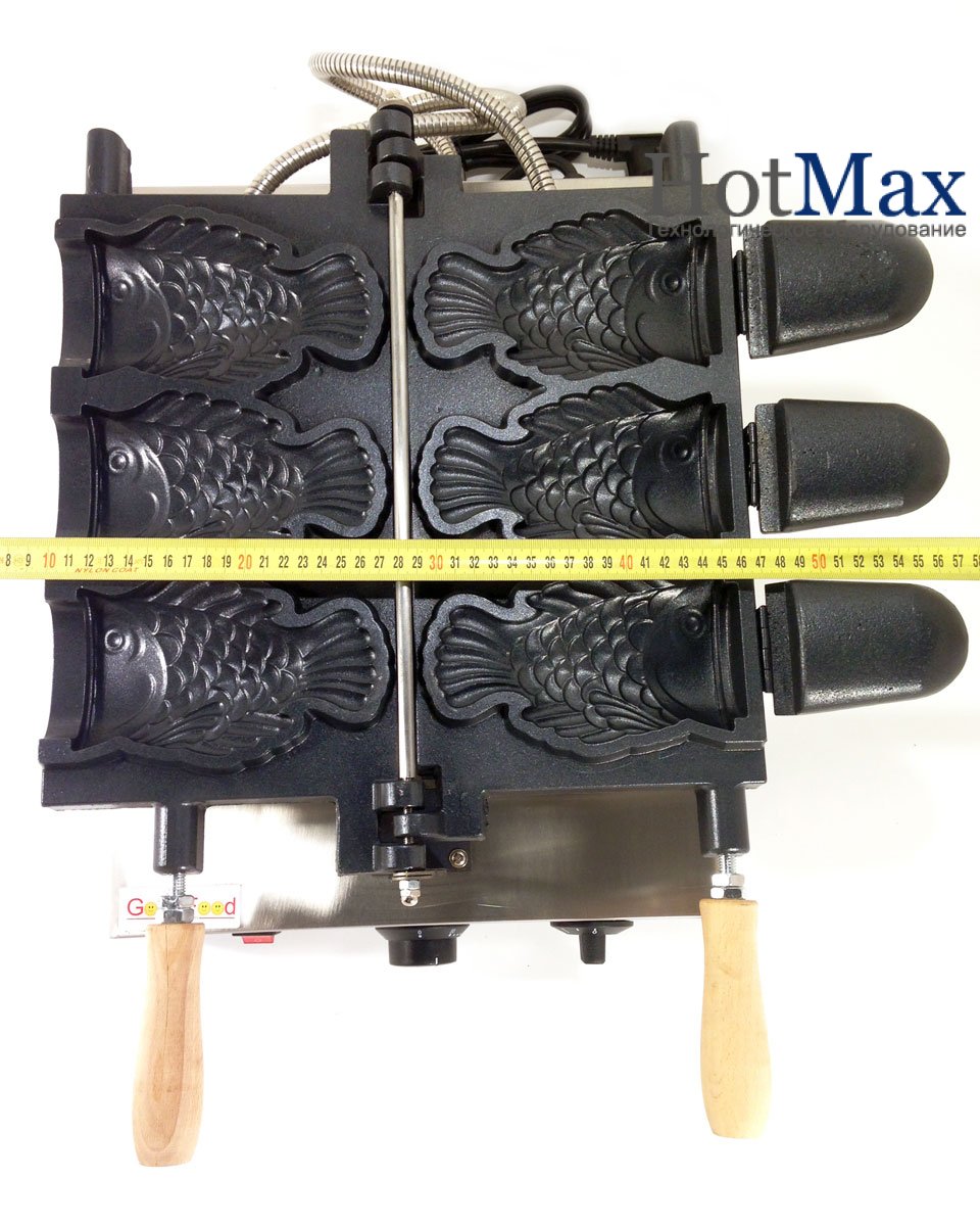 - Выпекает: 3 объемные, пустотелые вафли, в форме рыбки.