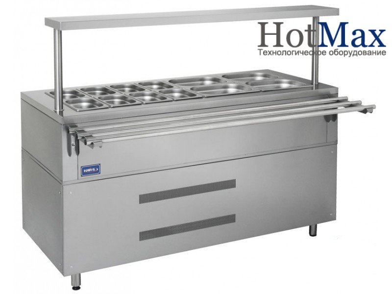 Охлаждаемый прилавок ПХ - 1500 (12 гастроемкостей - 8 х GN 1/4 (100 мм), 4 х GN 1/2 (100 мм)) – предназначен для хранения холодных блюд - закусок, салатов и др. 10 гастроемкостей располагаются над холодильной системой, которая постоянно поддерживает низкую температуру блюд.
