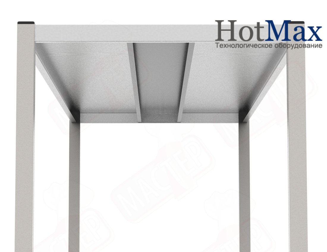 Полка выполнена из оцинкованной стали и усилена ребрами жесткости. Регулируемые по высоте опоры.