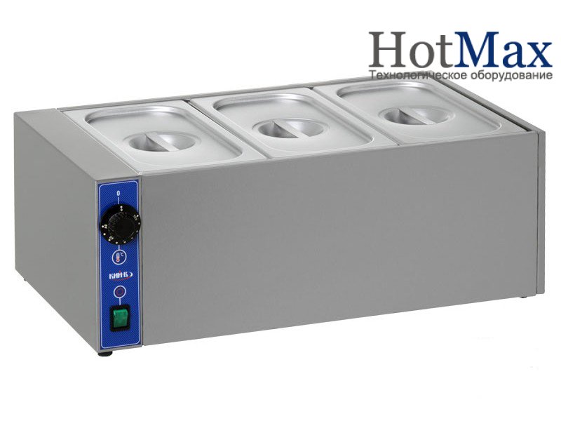 Мармит настольный МН-3 (3 х GN 1/3) – предназначен для хранения как первых, так и вторых блюд в горячем состоянии. Гастроемкости  располагаются над конфорками, которые постоянно подогревают содержимое, при этом сохраняя его горячим.