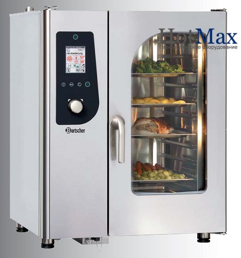 Электрический пароконвектомат M 10110 от немецкого производителя Bartscher предназначен для приготовления большинства гастрономических блюд и выпечки в условиях ресторанов, кафетериев, небольших столовых, отелей.  Это устройство заменяет сразу несколько видов технологического оборудования, позволяя при этом сохранять все полезные вещества приготовляемых продуктов.