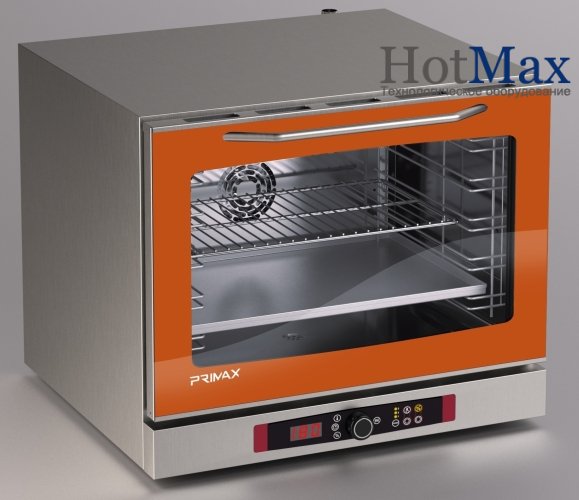 Пароконвектомат FDE-905-HR от итальянского производителя Primax позволяет готовить блюда в трех режимах: режим парообразования (максимальная температура до 105 С), конвекционный режим без использования пара (максимальная температура равна 260 С) и смешанный режим. В этом пароконвектомате предусматривается инжекторный способ образования пара.