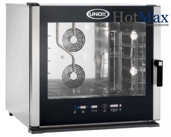 Имея габаритные размеры равные 860х900х820 мм, в этом пароконвектомате предусматривается 6 уровней, расстояние между которыми равно 80 мм. В процессе приготовления блюд используются гастроемкости европейского стандарта EN размерами 600х400 мм.