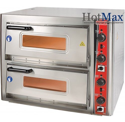 Двуярусная печь PO 6262 DE рассчитана на одновременное приготовление до 10 пицц диаметром 25см. или 8 пицц диаметром 30см. Корпус выполнен из крашенного меттала, внутренние стенки - нерж.сталь. Смотровое окошко дверцы – из жароустойчивого стекла, благодаря чему можно визуально контролировать процесс выпечки, не открывая дверцы, тем самым сокращая до минимума потери тепла. К тому же, имеется внутренняя подсветка камер, таймер времени и световые индикаторы: все это упрощает процесс работы с печью. Поды печи изготовлены из огнеупорной керамики.