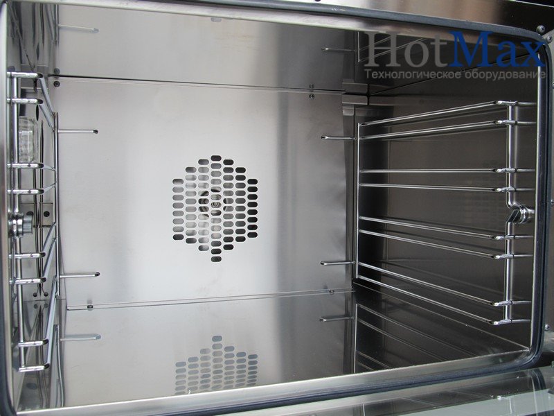 Равномерное распределение горячего воздуха от ТЭНов обеспечивается циркулярным вентилятором, который располагается внутри рабочей камеры. Именно благодаря этой технологии на выходе можно получить равномерно прожаренные изделия с румяной хрустящей корочкой.