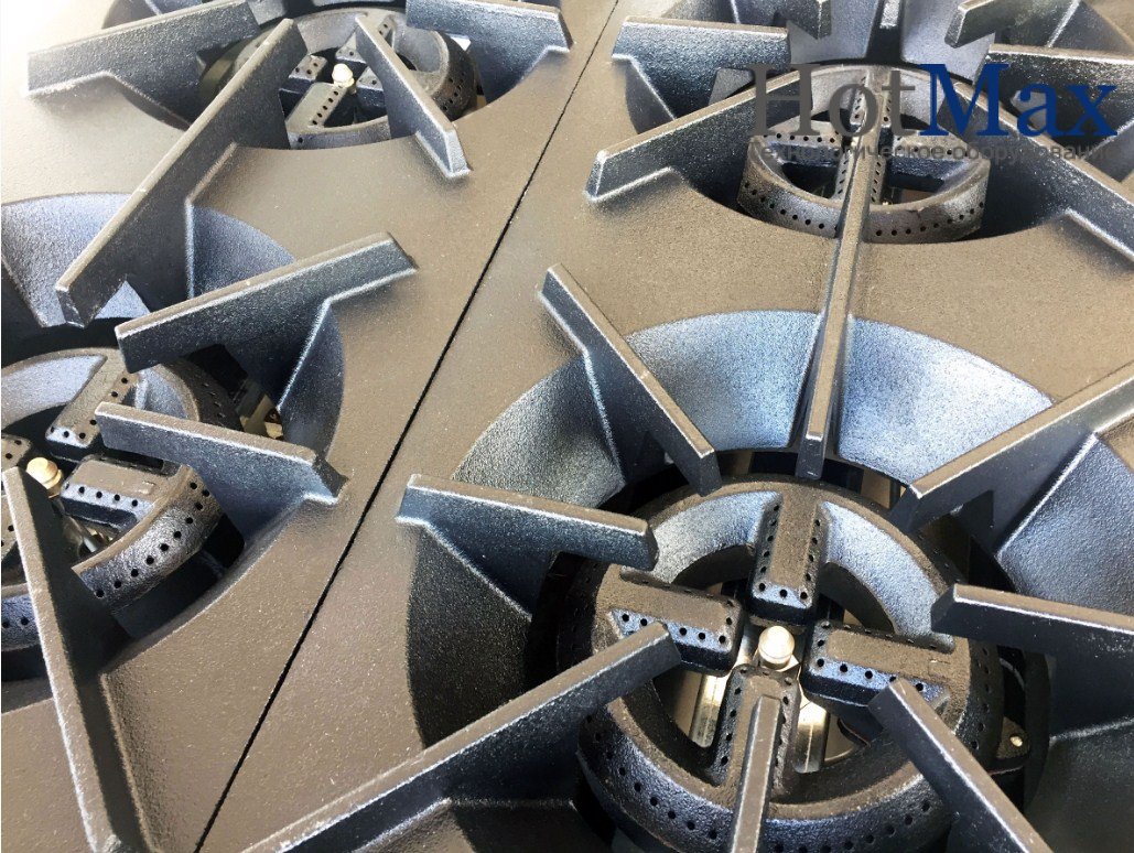 Газова промислова плита виготовлена з нержавіючої сталі. Має 6 економічних пальників швидкого розігріву dх156мм по 32,925 МДж. Накладки на конфорки виготовлені зі сплаву чавун/латунь з високим ККД. Грати виготовлені з товстого чавуну, таким чином витримують велику вагу посуду.