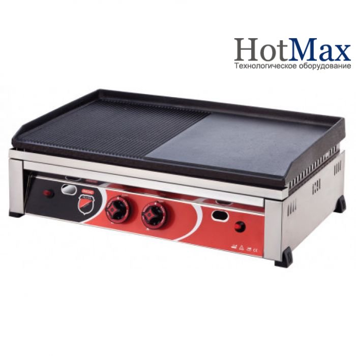 Поверхность жарочная газовая SILVER 2602 - комбинированная, 1/2 ребристая, а 1/2 гладкая, разм. рабочая поверхн. 700х400 мм, чугун. Материал корпуса: нерж.сталь. Под балон.газ. Расход 0,802 kg/h.