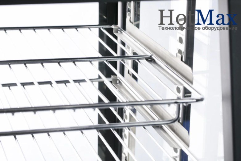Витрина данной модели оснащена тремя решетчатыми полками, высоту расположения которых можно отрегулировать, а также поддоном для воды.