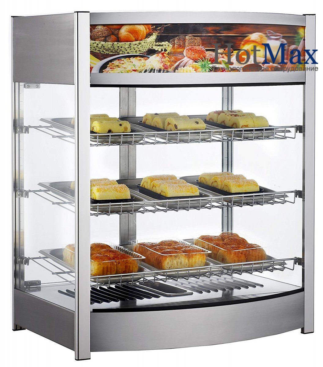 Витрина тепловая настольная Frosty RTR-97L подходит для продажи кондитерских изделий, булочек, пирожков и др. С помощью демонстрационного оборудования не составит труда эффектно акцентировать внимание посетителей на блюдах, попутно решая проблему их кратковременного хранения. Корпус: - нержавеющая сталь (внутри нержавеющая сталь хромированая) - внутреннее освещение - стекло с 4-х сторон - термостатическое управление - 3 уровня (3 полки)