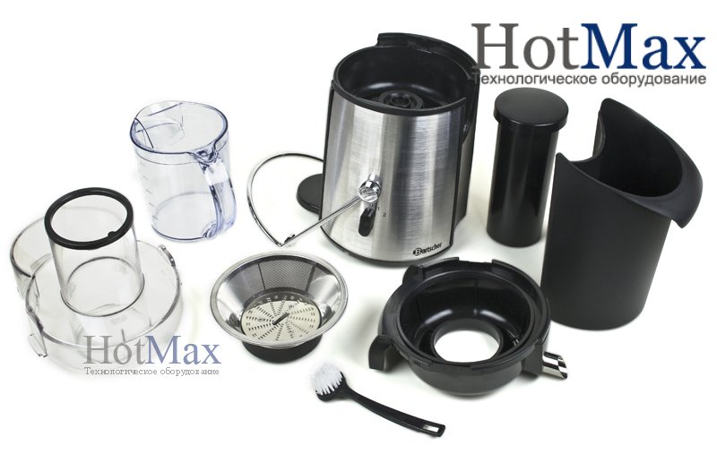 Соковыжималка легко разбирается, в комплекте прилагается специальная щетка для очистки труднодоступных мест