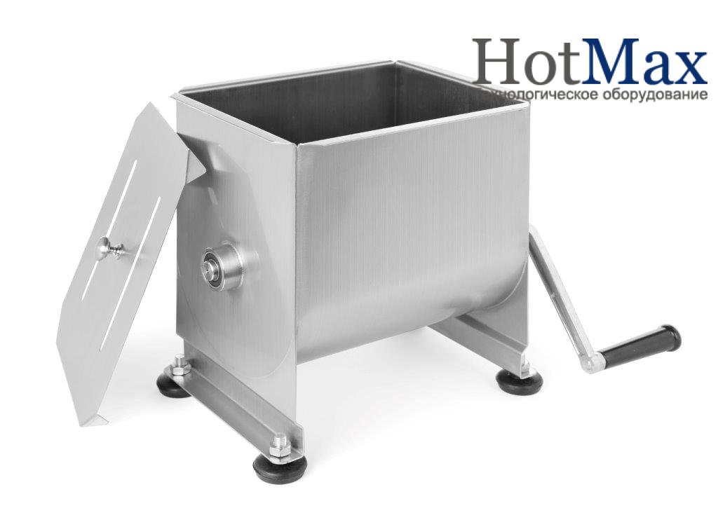 Фаршемешалка с ручным приводом выполнена из нержавеющей стали AISI 304. Очень проста в обслуживании и чистке. Полезная емкость погрузки мяса в килограммах: 11,7 кг (первый класс).