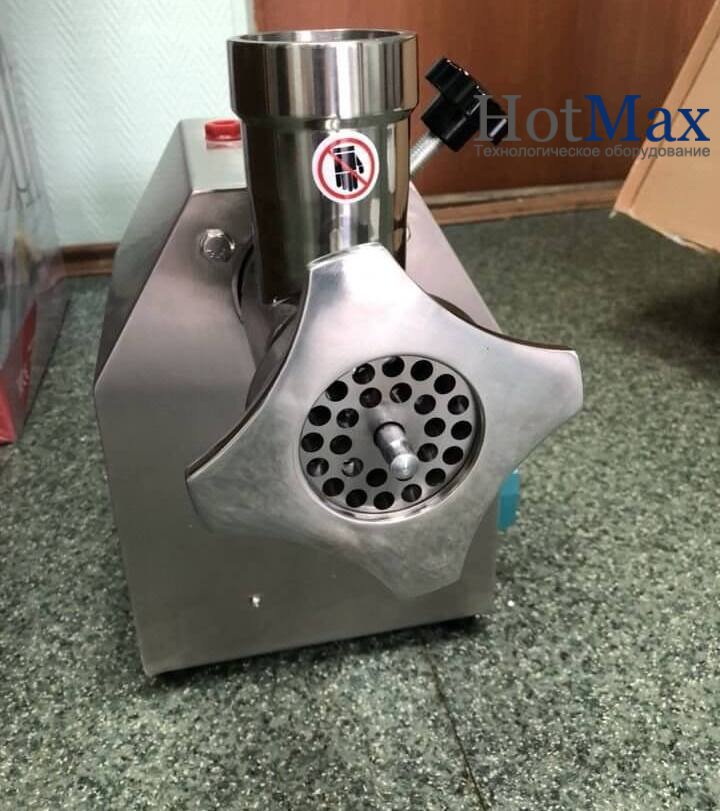 У комплектацію входять: завантажувальний лоток, штовхач, 2 ножа і 2 решітки 6мм і 8мм. Продуктивність 150кг/год.