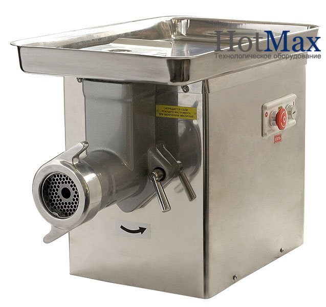 Заявленная производительность данной модели равна 600 кг/ч, но практическая производительность мясорубки зависит также от скорости подачи порезанного продукта к шнеку, качества мяса и степени заточки режущих инструментов. Габаритные размеры мясорубки равны 560х540х420мм. Подключается агрегат к трехфазной электросети напряжением 380В, потребляемая мощность составляет 1,9кВт.