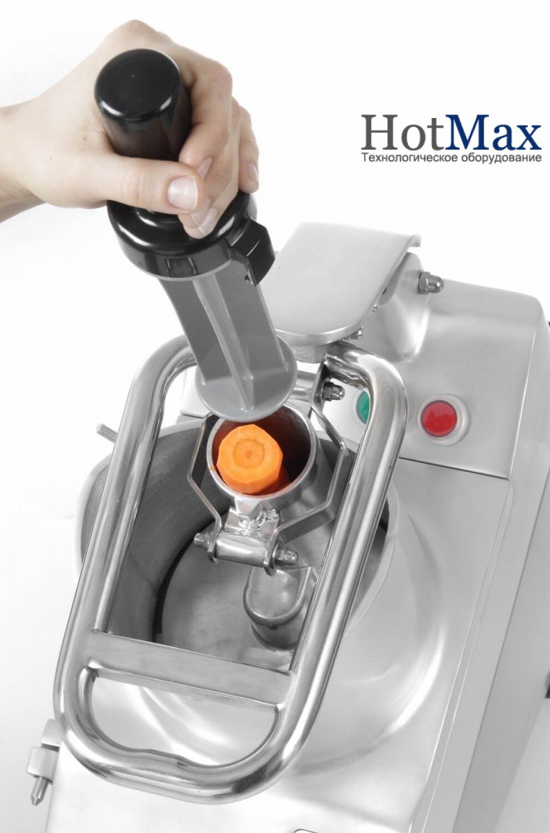 - Великий отвір з важелем для введення великих шматочків овочів до ø 165 мм.