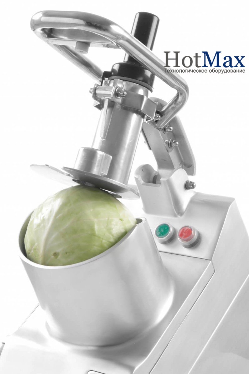 - 2 системи безпеки: овочерізка вимикається після підйому рукоятки важеля і коли кришка відсіку камери піднімається;