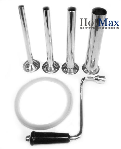 Обертанням маховика маса проштовхується до цівки і виходить вже безпосередньо в оболонку. Таким чином, оператор може контролювати швидкість і обсяг наповнення. Апарат виготовлений повністю з харчової нержавіючої сталі. У комплекті поставляється кілька цівок різного діаметра 15, 18, 24 і 37мм.