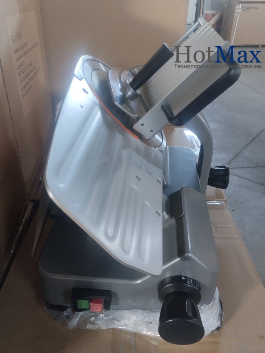 Слайсер FS408 Gooder призначений для нарізування таких гастрономічних продуктів як: ковбаси, шинка, копченість, сири тощо. Забезпечує швидку та точну нарізку харчових продуктів на скибочки певної товщини.