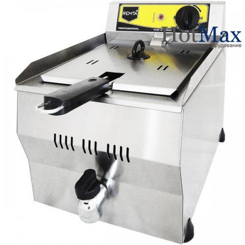 Фритюрниця Remta (Ремта) Туреччина R110 на 6 літрів з краном – однопостова електрична модель, яка відмінно підходить для використання на професійній кухні підприємств громадського харчування. Вона призначена для приготування м'ясних, овочевих, рибних та інших страв у фритюрі. Кошик для продуктів виготовлений з харчової нержавіючої сталі. Вона гігієнічна і довговічна.