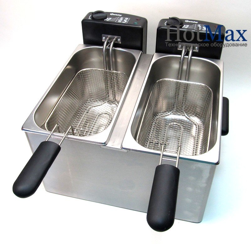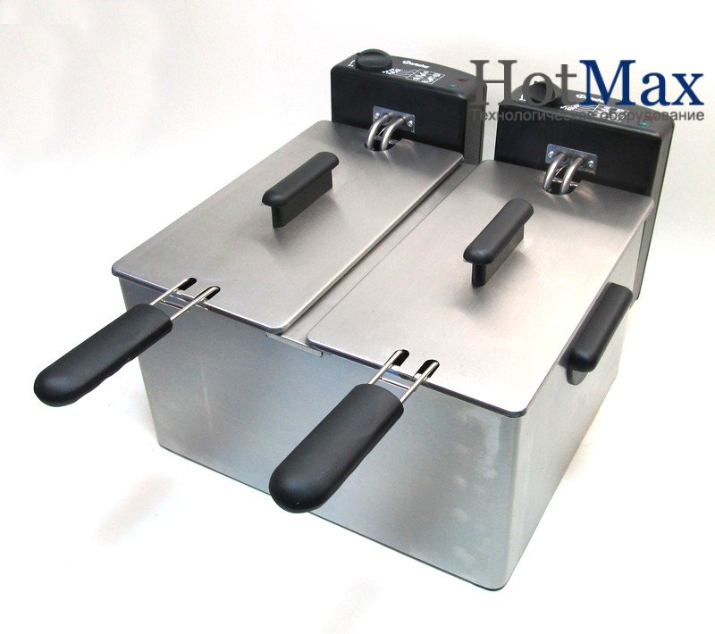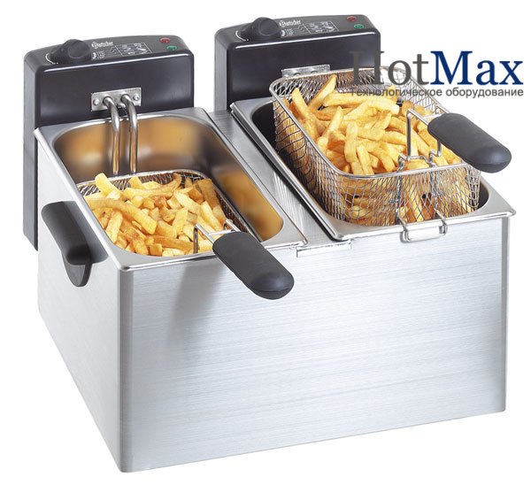 Обсяг кожної з робочих ємностей дорівнює 4 л. Підключається дана модель до однофазної електромережі напругою 220В, споживана потужність становить 4,4 кВт. Робоча температура, що лежить в діапазоні від +90 до + 195С, задається і підтримується на необхідному рівні для кожної ємності індивідуально завдяки двом незалежним термостатам. Наявність запобіжного термостата підвищує рівень безпеки роботи обслуговуючого персоналу.