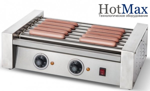 Роликовый гриль для сосисок хот-дог, 7 роликов из нержавеющей стали, 2 зоны нагрева (2 регулятора мощности). Температурный режим 50-300 град.