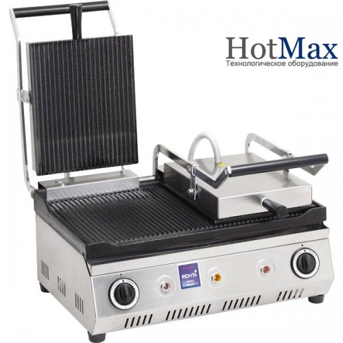 Електричний контактний двопостовий гриль Remta R80 з ребристою поверхнею. Підходить для розігріву шаурми (місткість 6 штук), тостів, сендвічів і т.п. Регулятор температури від 50 до 300 градусів.