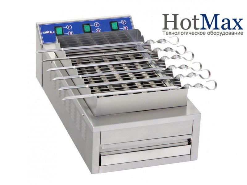 Шашлычница барбекю ШБ-6 комплектуется семью шампурами из нержавеющей стали. Регулировка управления ТЭНами, которые выполнены из нержавеющей трубы, позволяет снизить затраты электроэнергии. Наличие поддона для сбора жира позволяет не беспокоится о чистоте рабочего места.