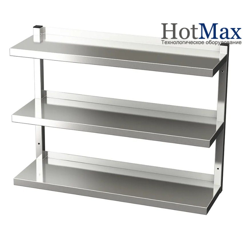 Полиця навісна трирівнева з нержавіючої сталі – додатковий елемент будь-якої професійної кухні громадського харчування. Використовується в професійних кухонних цехах в якості місця зберігання посуду, спецій та харчових продуктів.