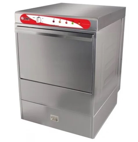 Корпус фронтальної посудомийної машини виготовлений з нержавіючої сталі. Укомплектована дозаторами миючого і обполіскуючого засобів. Бойлер для підігріву води до 85 С. (полоскання), 55 С (мийка). Оснащена фільтром води, що значно збільшує термін експлуатації при високій жорсткості води. Підходить для кафе, ресторанів, великих їдальнях або виробничих цехів.