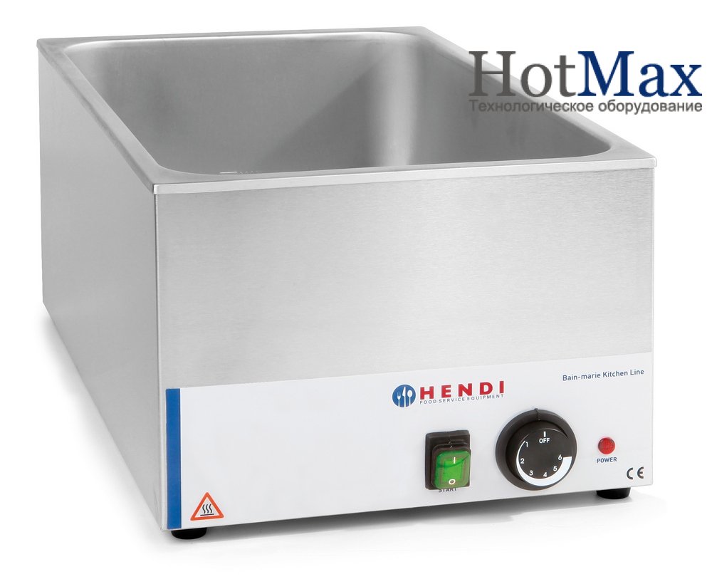 Мармит Hendi 238905 Kitchen Line – GN 1/1, 1200Вт имеет плавную регулировку температуры до 85ºC Ёмкость для воды изготовлена из нержавеющей стали с профилированными гладкими внутренними краями, которые помагают содержать её в чистоте. Оснащен выключателем ON/OFF, термостатом и индикатором. Предназначен для гастроёмкостей глубиной до 150 мм