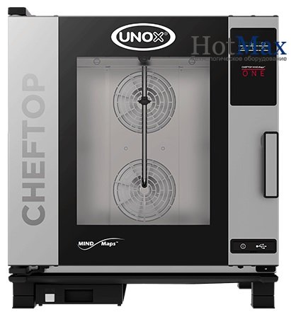 Оснащается пароконвектомат UNOX одноточечный термощуп, автоматическая система мойки, светодиодная подсветка камеры, цифровая сенсорная панель управления, 8 скоростей вентилятора (4 с реверсом + 4 полустатических).