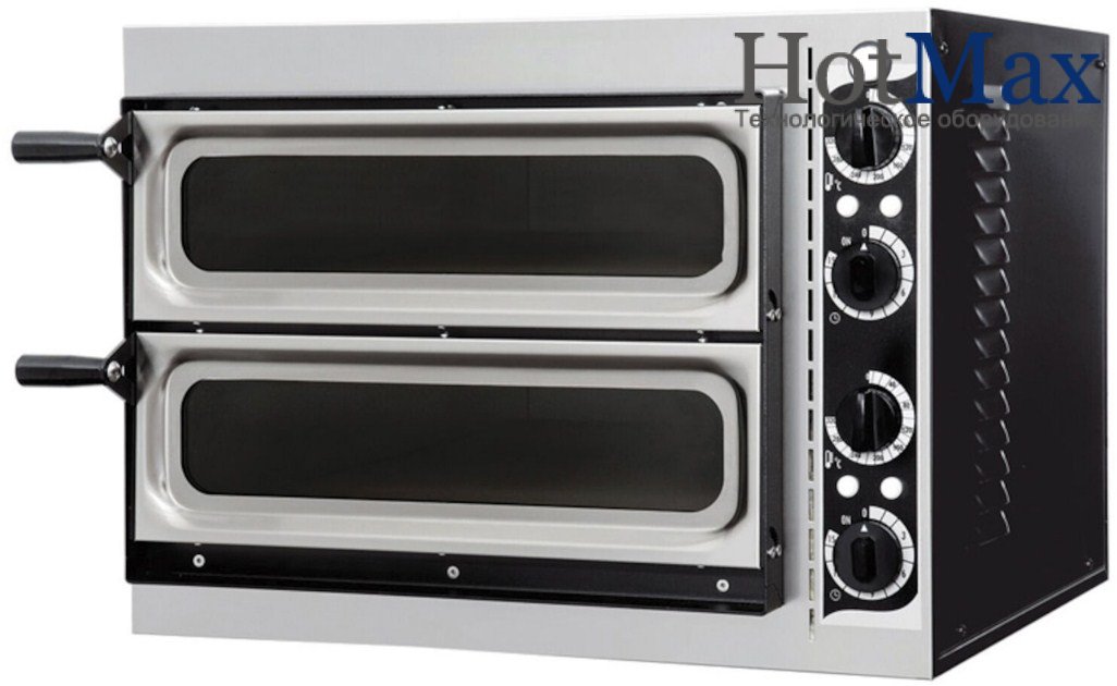 Печь для пиццы Mini 2 двухкамерная c электромеханическим управлением изготовлена из нержавеющей стали. Внутренний размер камер - 410х360х90 мм что позволяет поместить в нее 2 пиццы диаметром до 350мм.